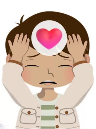 No app, a imagem de um coração batendo na cabeça mostra de um jeito simples como muitas crianças explicam a dor pulsátil, um sintoma comum da enxaqueca.